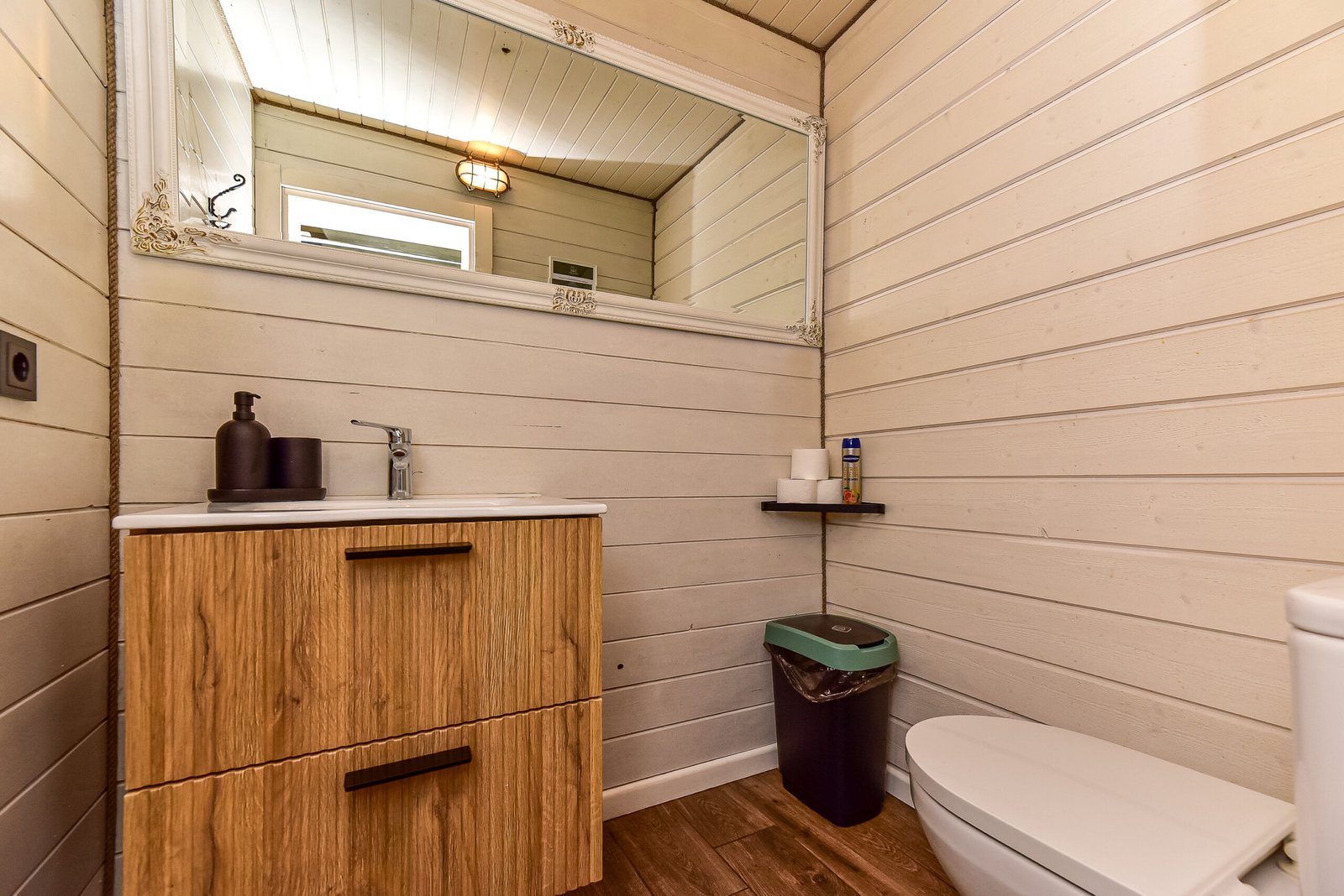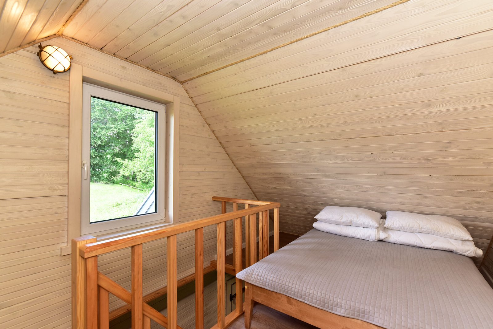 1 aukštas: atskiras kambarys su dvigule lova ir dvigulė sofa-lova poilsio kambaryje;